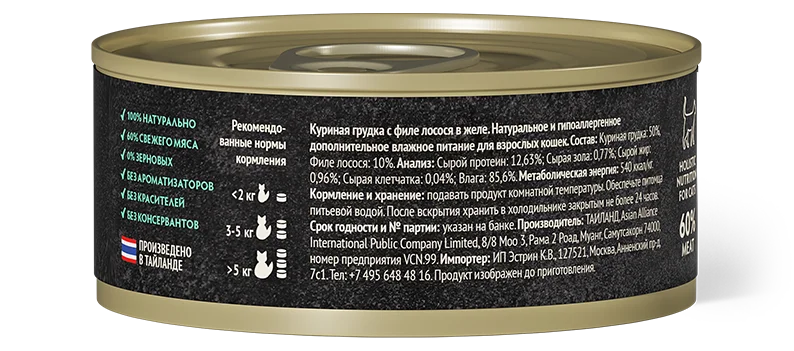 Куриная грудка (50%), Филе лосося (10%).